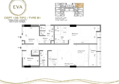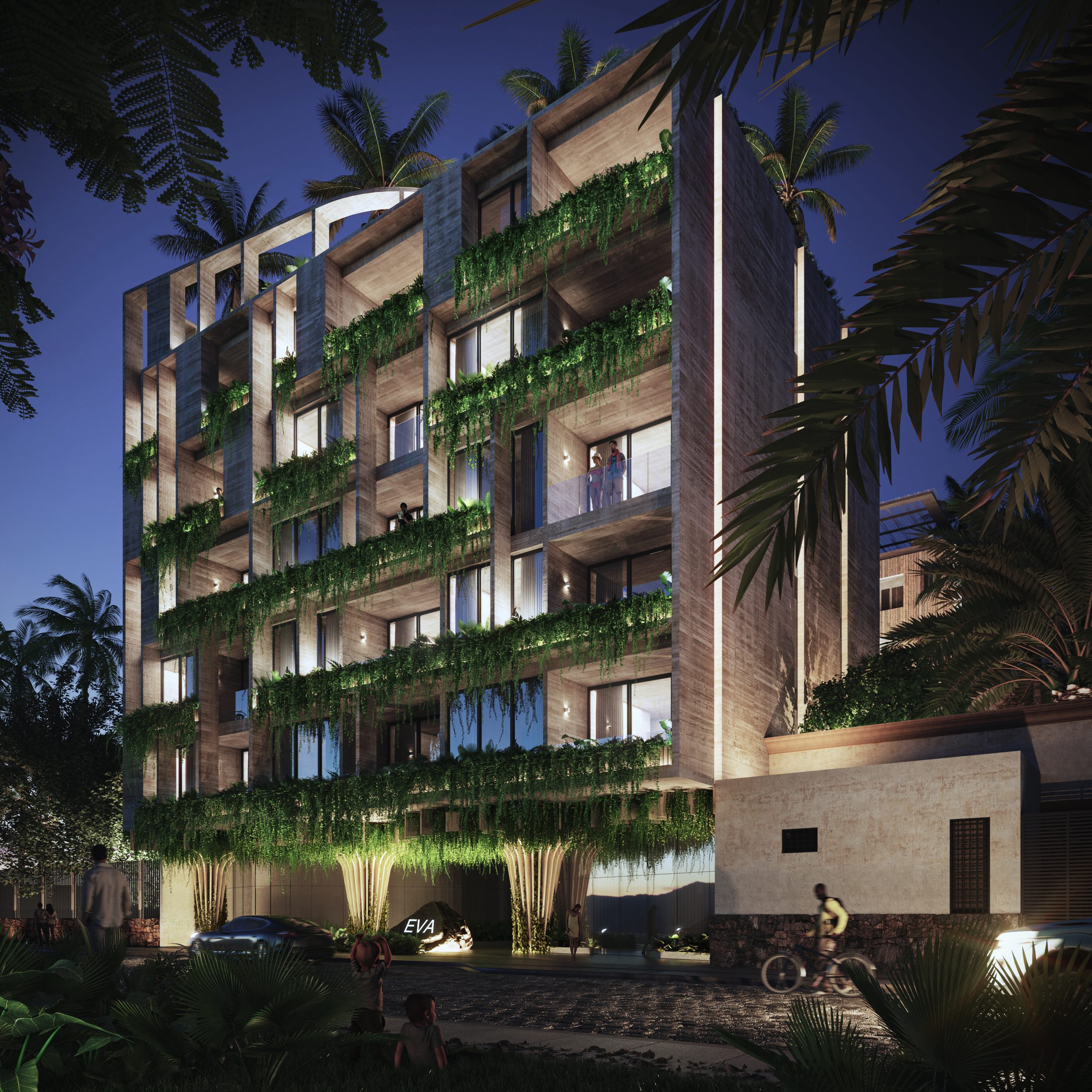 EVA combina un diseño de vanguardia que celebra la belleza, la calidad y la naturaleza. Inspirándose en el mítico jardín del Edén, EVA se concibió como una comunidad autónoma con tiendas públicas y opciones gastronómicas en la planta baja, un exclusivo bar en la azotea, piscina, sala de estar y un gimnasio de última generación.