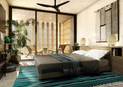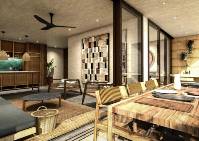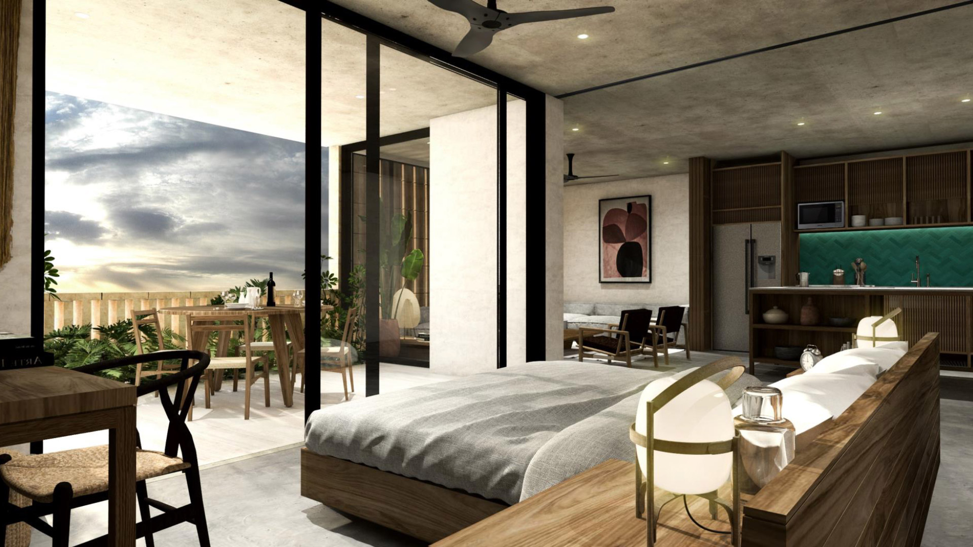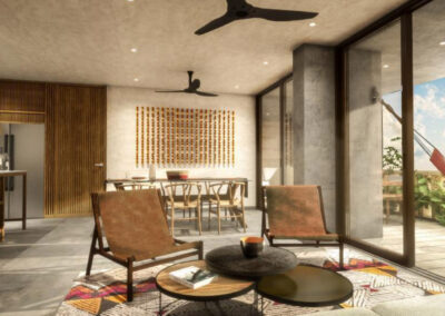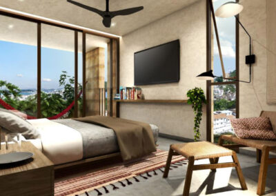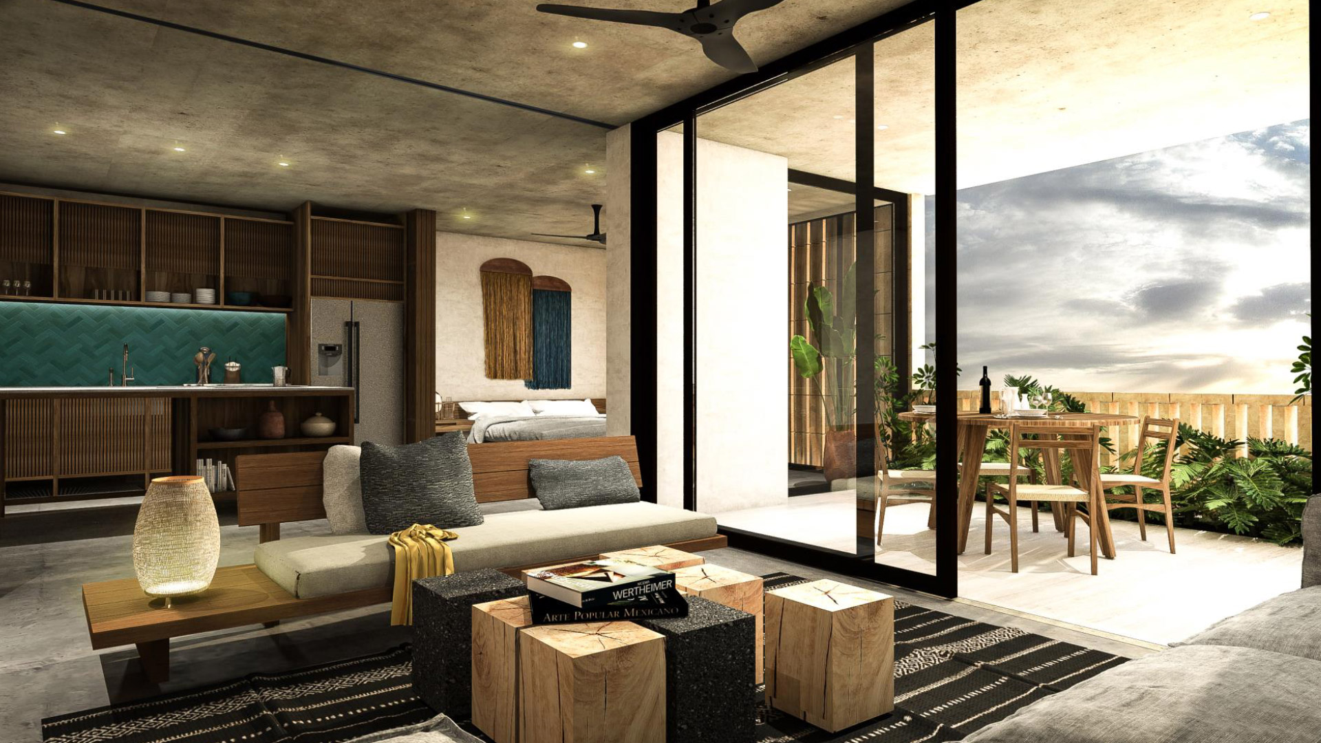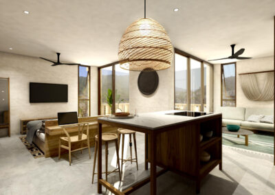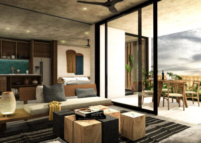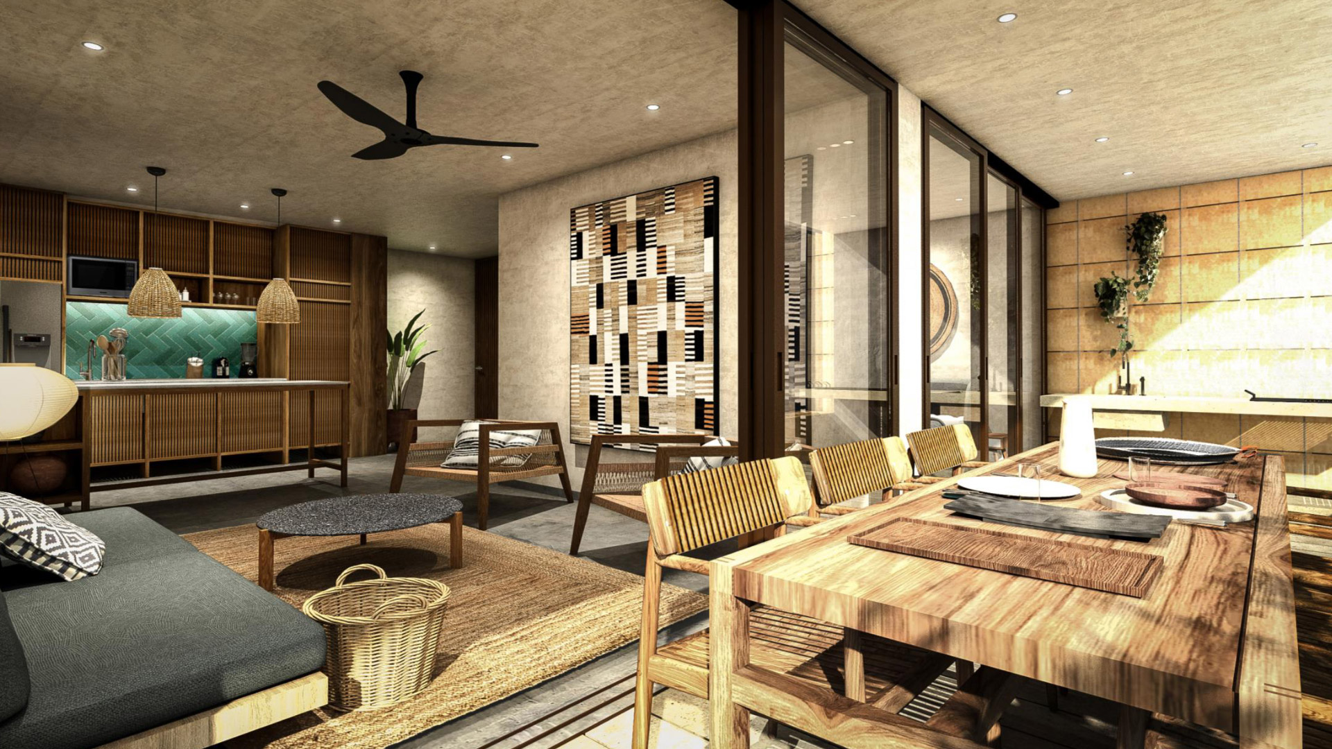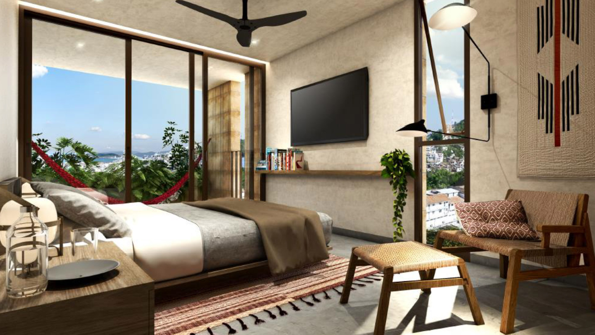 Ofrenda emplea un diseño orgánico mientras explota colores y materiales naturales para crear una experiencia de vida única. Los acabados crudos, el concreto pulido y la madera natural agregan romance al estilo de vida de Vallarta.