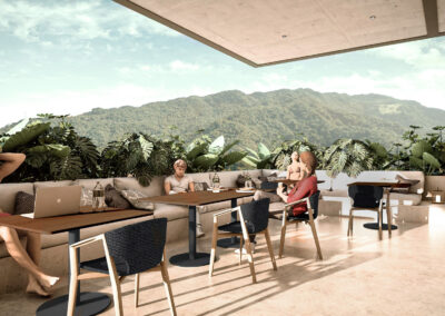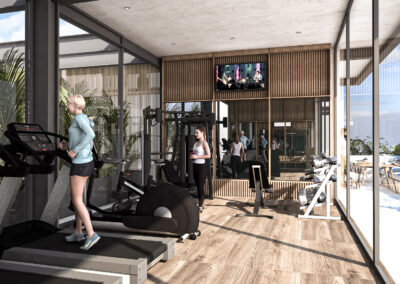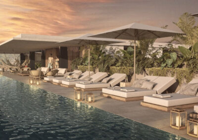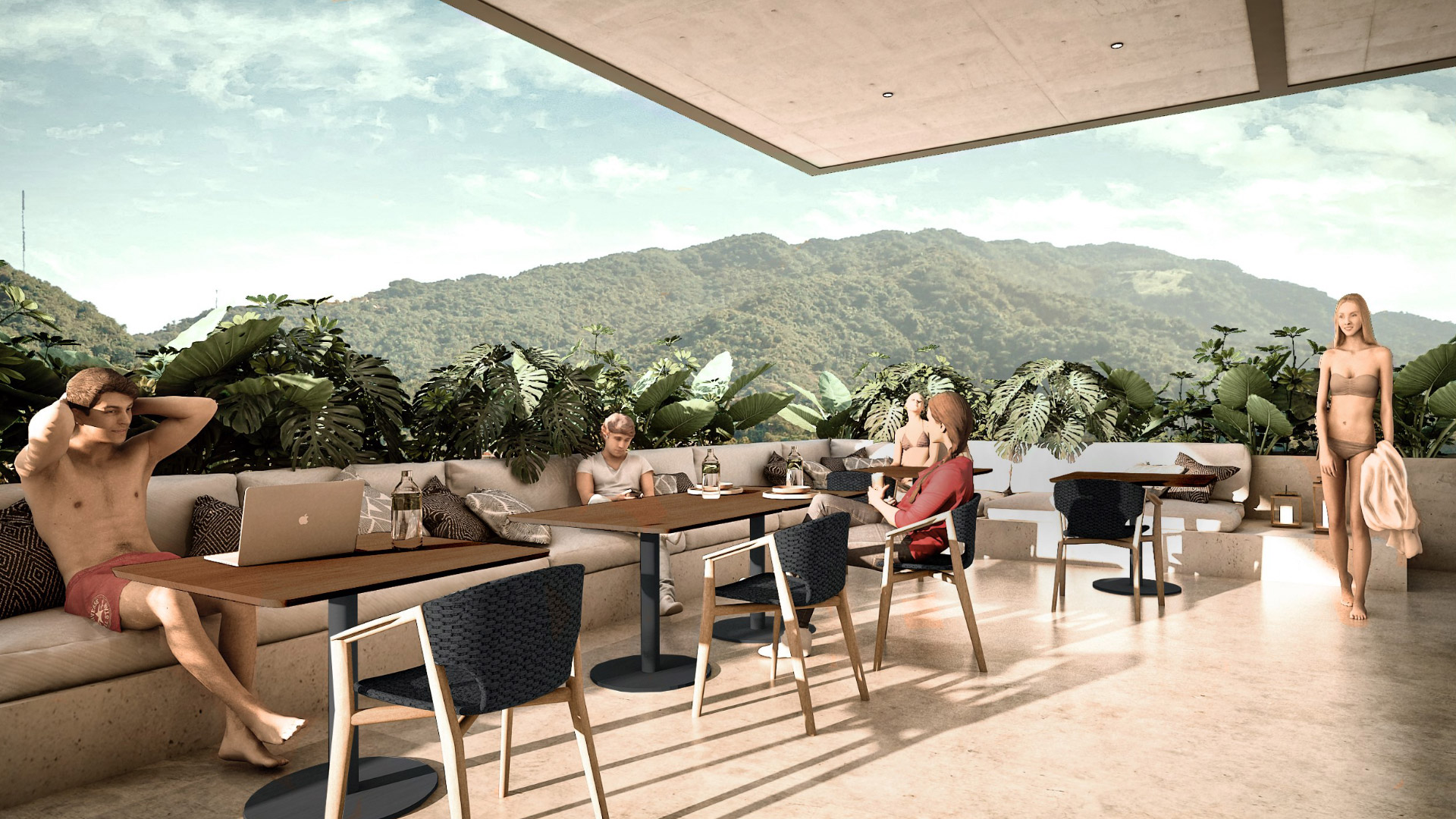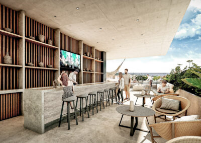 Ofrenda fue concebida pensando en la comodidad y la vida moderna en la playa. Sus amenidades incluyen una espectacular terraza en la azotea con una piscina de borde infinito de 26 metros, bar y un gimnasio completamente equipado con increíbles vistas de las montañas, la isla del río y la comunidad local.