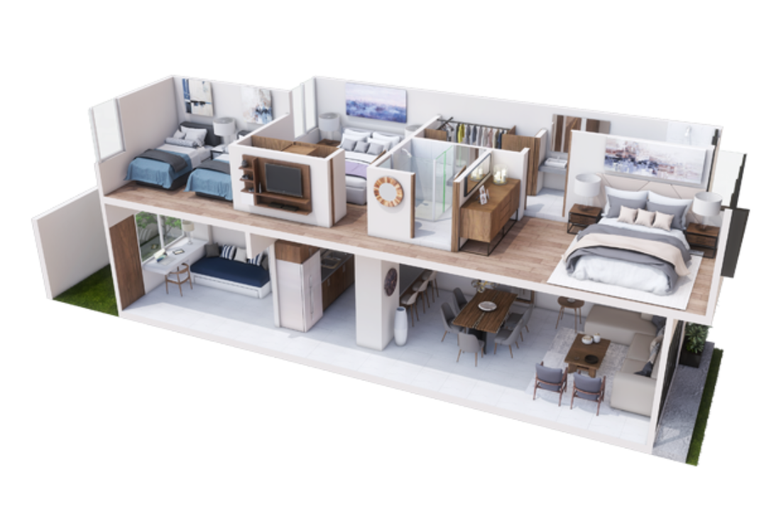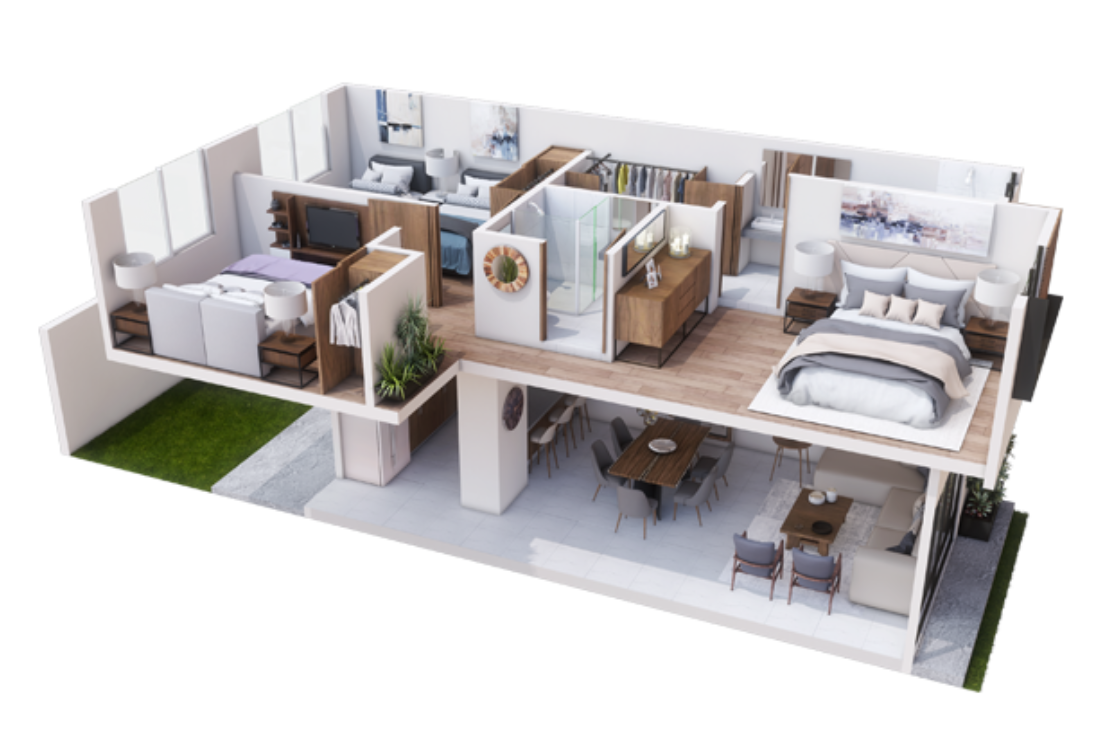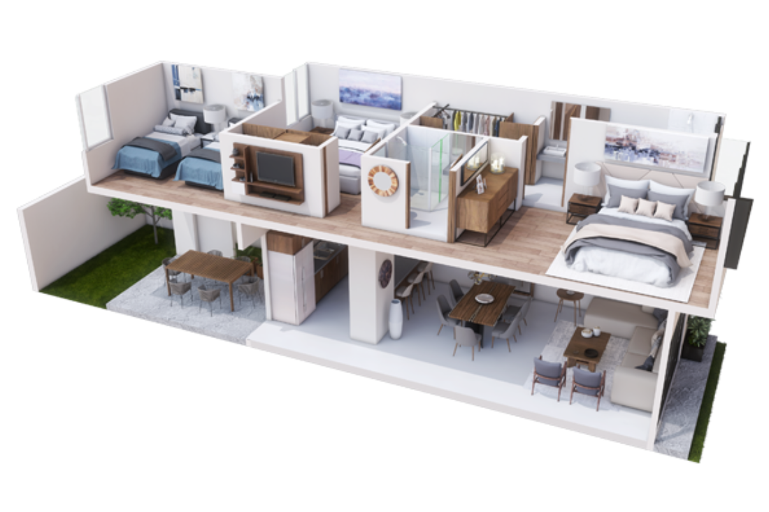 Los encinos cuentan con espacios amplios en casas de dos niveles. Tiene un aprovechamiento óptimo de la luz natural y ventilación, ideal para el clima en Puerto Vallarta.